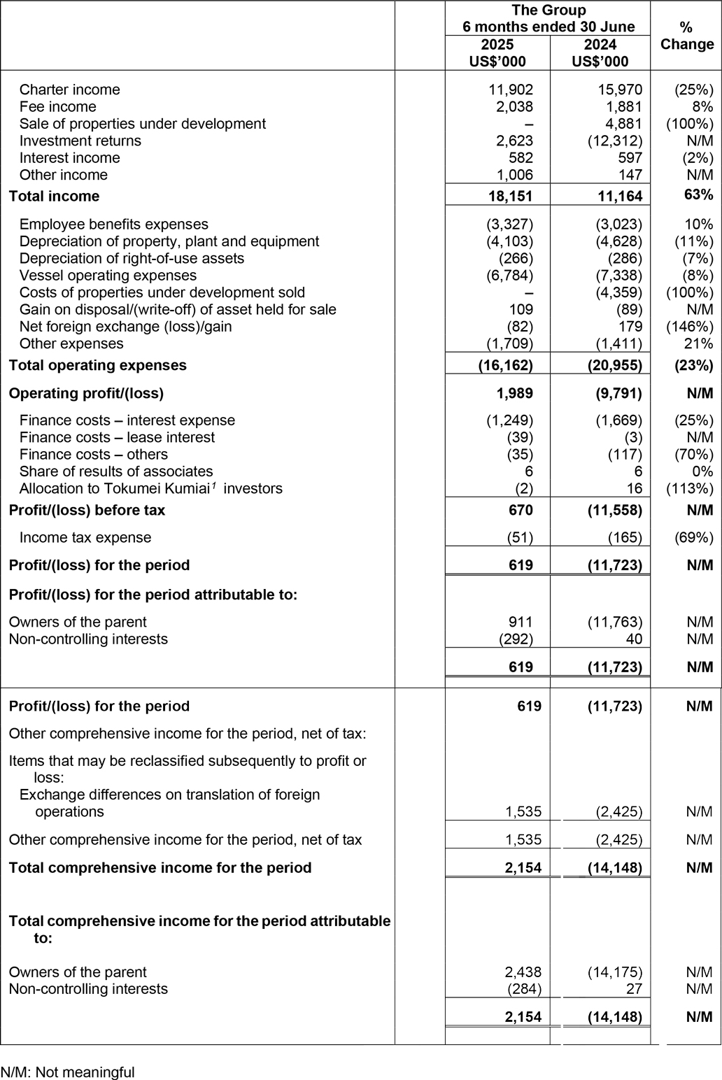 - This included US$2.2 million valuation gains from 18% ship joint investments which the Group is exiting in 2H2025.